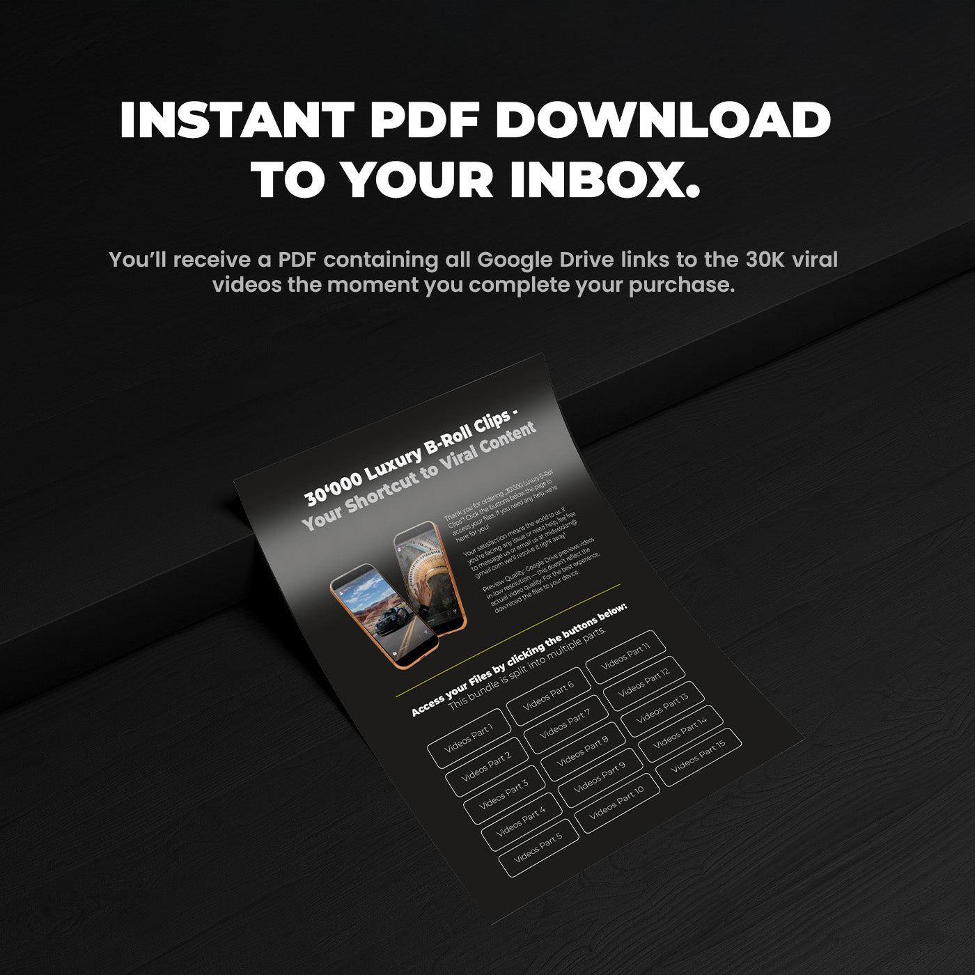 You’ll receive instant access to the videos through a secure drive link, where you can download them at your convenience.